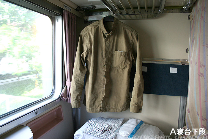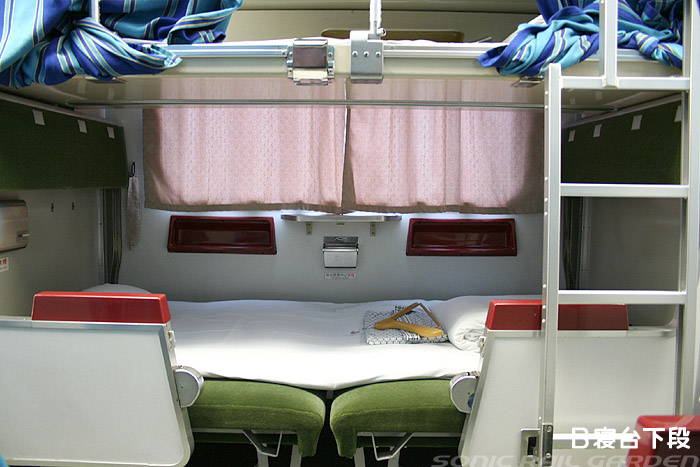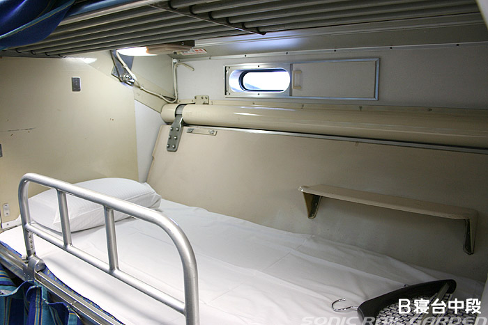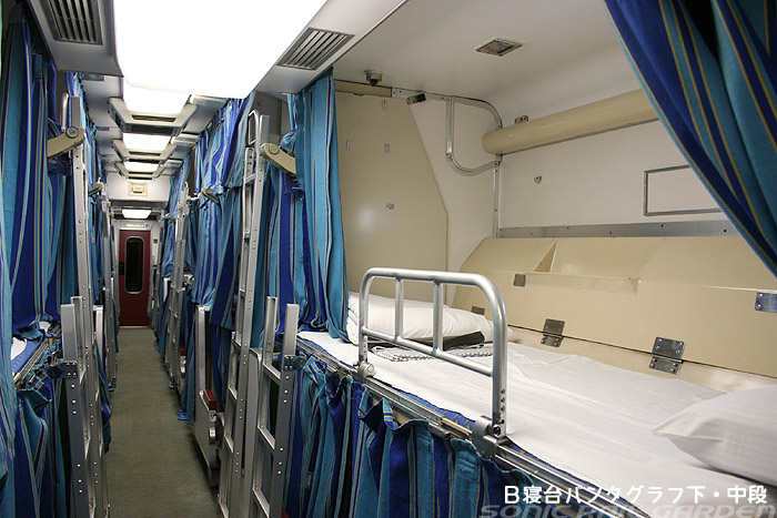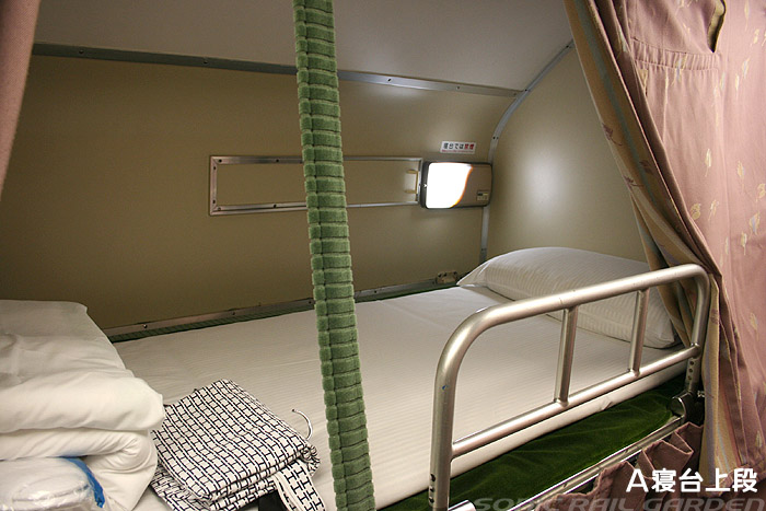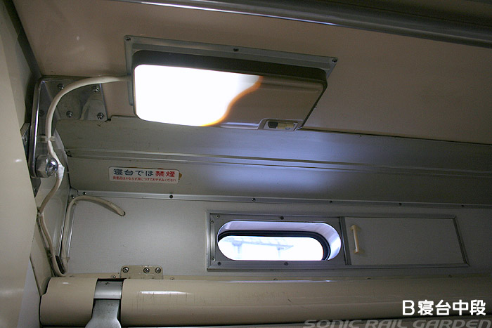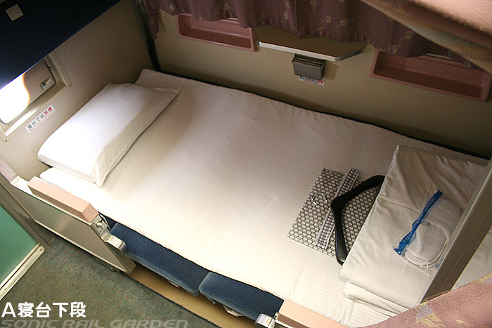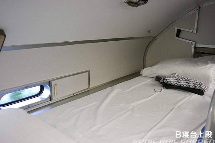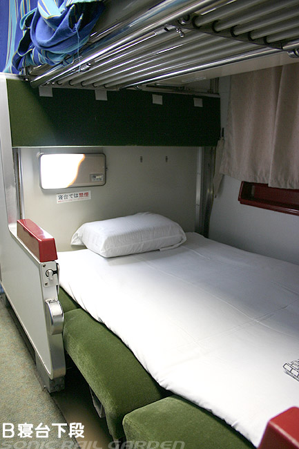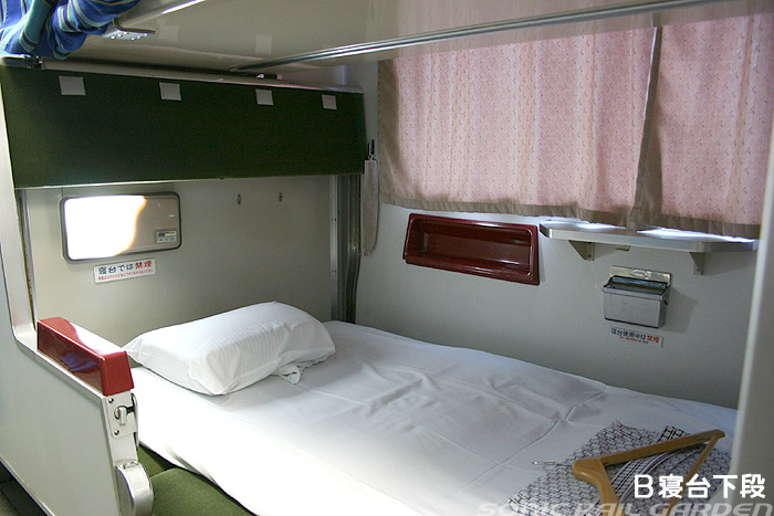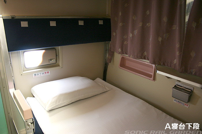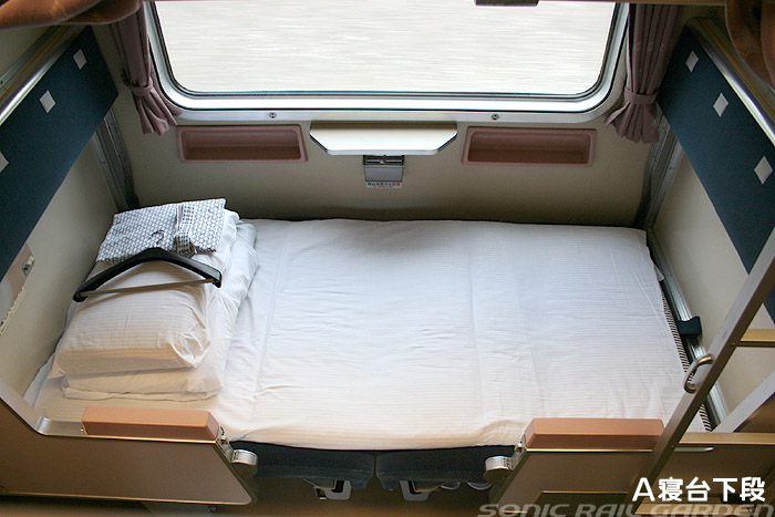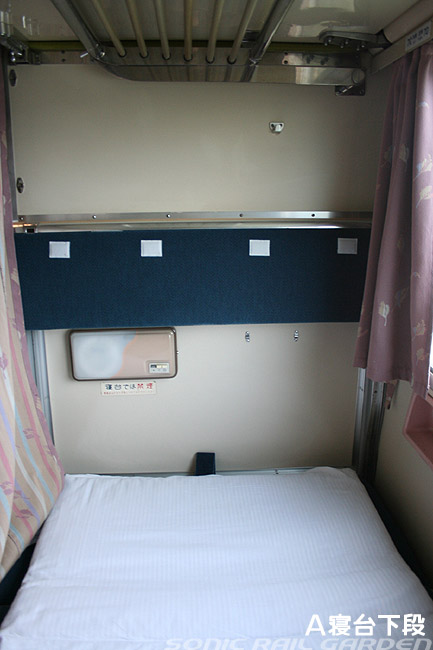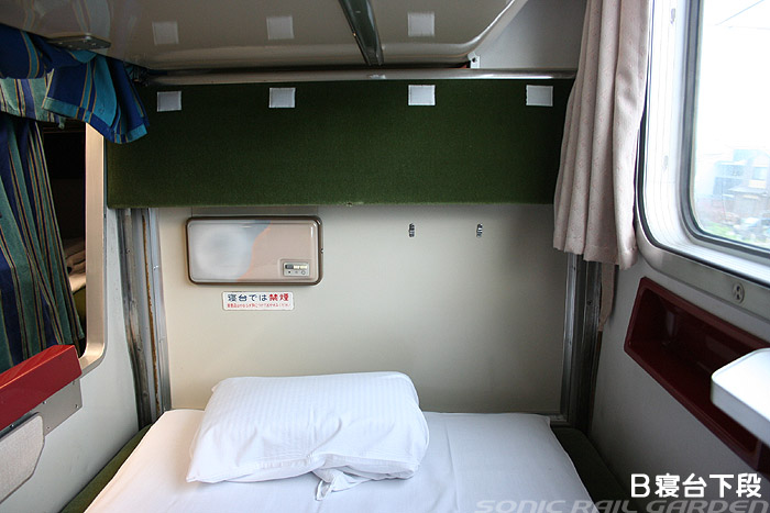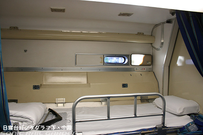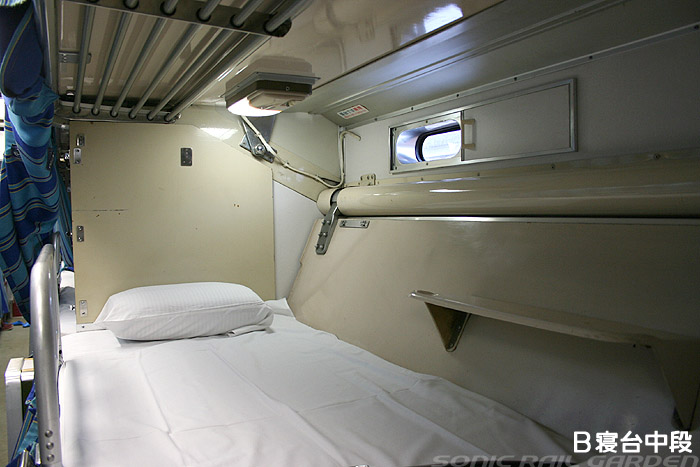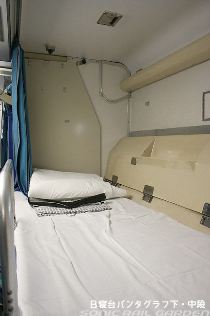パンタグラフ下のB寝台中段。1編成中わずか6区画のみ。 | 設定上は「中段」なので、寝台料金は5,250円。 ![]()