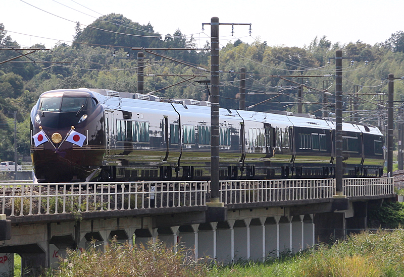 1本のプレスリリースが発表されました。 お召し用車両「1号編成」に替わる、天皇皇后両陛下・皇族・国賓ご利用の特別な電車を製造。 そこに「カシオペア」や「お座敷電車」の要素を持った、高級感に満ちたハイグレードな車両とし、 新しい旅行のスタイルを提案していこうという内容。 「お召し列車」用車両を、普段は一般向け「ジョイフルトレイン」としても活用するというものです。 そして発表から3年という時間を費やして、2007年7月ついに姿を現したのがこのE655系電車です。 651系「スーパーひたち」の流れを汲む流線型に、いかついフェイス。 光の加減によって褐色から漆色そして紫色へと変化するマジョーラ塗装のボディには、ノーブルな金のライン。 さらにディーゼルエンジンを積んで、機関車の牽引で非電化区間への入線も可能とした設計となっています。 愛称は「利用する人みんなに和んでもらいたい」というところから「和(なごみ)」に決定。 通常は、皇室向け特別車両を抜いた5両編成で、ツアー列車と活躍しています。 エクステリア・インテリアデザイン:TDO(Transportation Design Organization)+剣持デザイン研究所 (撮影時期:2008年) |