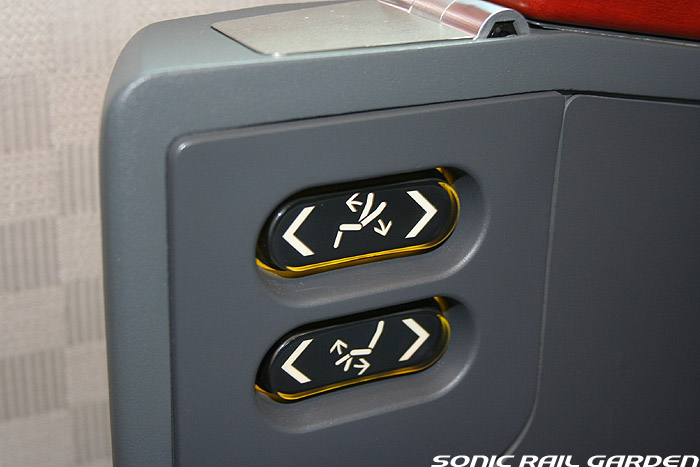 レッグレストは電動フリーストップ式。 | ちなみにフットレストは、VIP席も含めて全席で装備されていない。