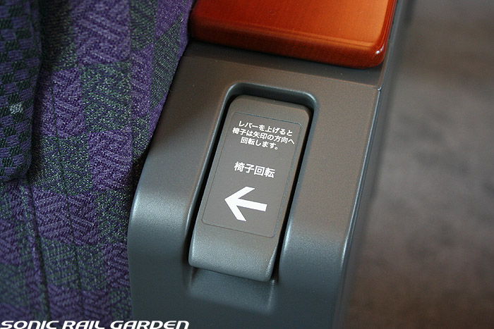 座席の回転は台座の足踏レバーではなく、アームレスト後方のレバーで。 | E3系新幹線「こまち」の初期製造車の座席と同じタイプ。