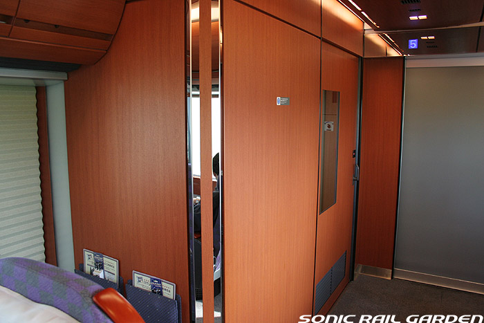 2号車サニタリースペース側のドア寄りの座席。 | デッキ通路幅に合わせるため1+1で座席が配置されている。 2列の座席に干渉しないよう、簡易仕切りが設置されている。