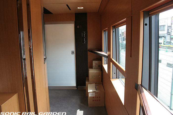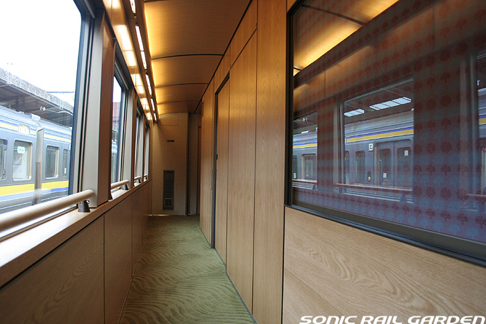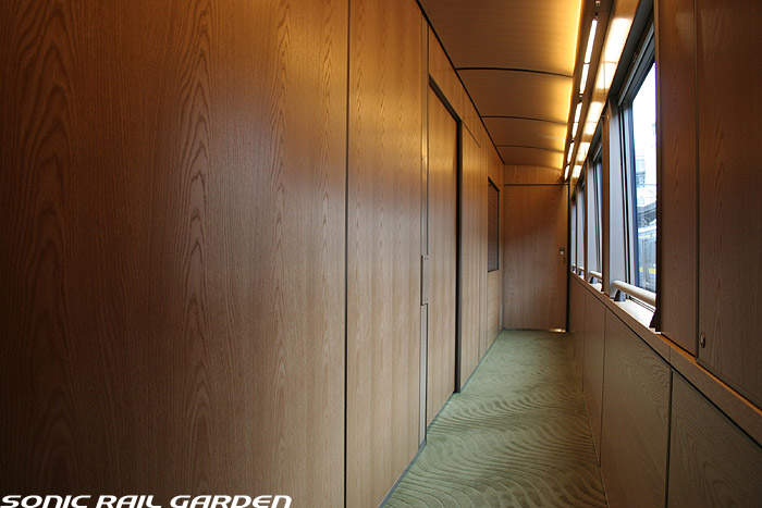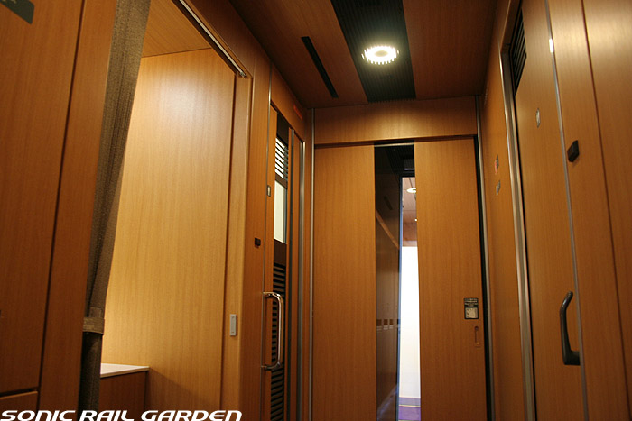 3号車車両の大半を占める「VIP個室」の脇の通路。 | 画像左側の壁の向こうが「VIP個室」。