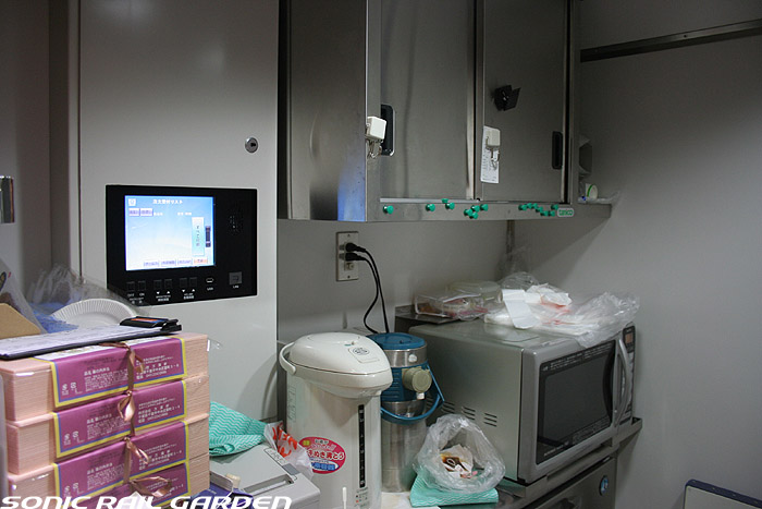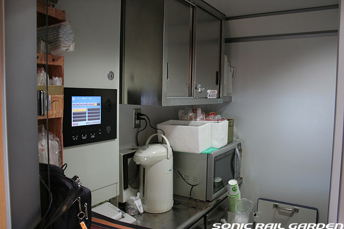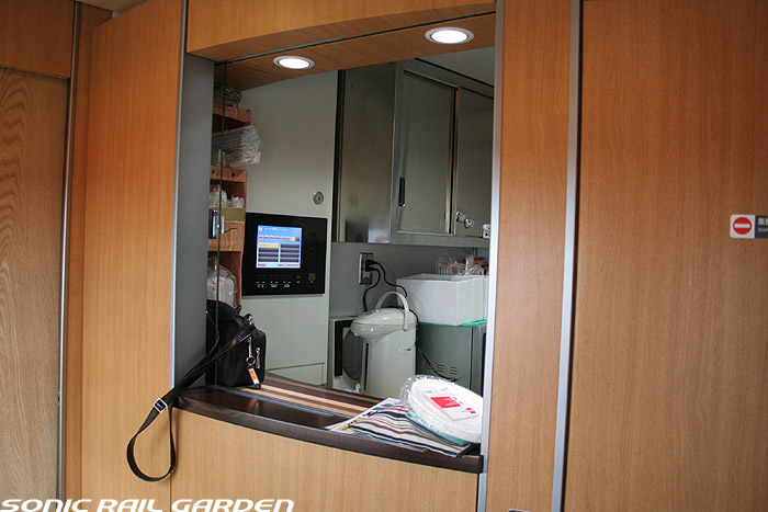 4号車と3号車には「売店」兼「車内販売準備室」が設置されています。 いずれも窓側には小さなカウンターが設置されていて、プチビュッフェとしても機能しています。 (ただ、車内販売品のダンボールがドカンと置かれていて、居心地はよくありません) 電子レンジ・アイスストッカー・コーヒーメーカー・シンクなど一通りの設備が整っていて、充実の共食設備となっています。 マルチスペースは5号車の客室内に設置されています。見た感じでは他の特急車両の設備と同じようでした。 5号車には車椅子対応席もあり、トイレもマルチタイプの大型個室となっていて、バリヤフリー設備が集約されています。 |