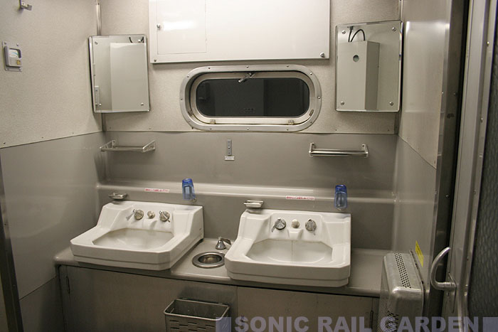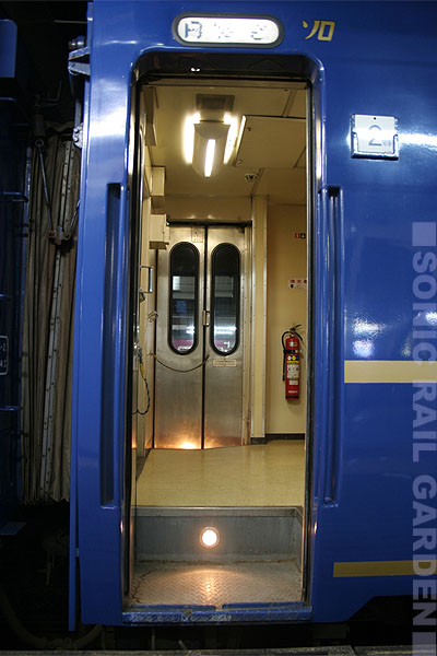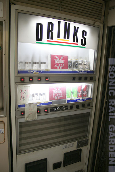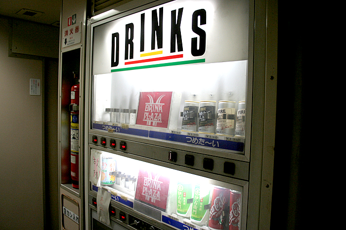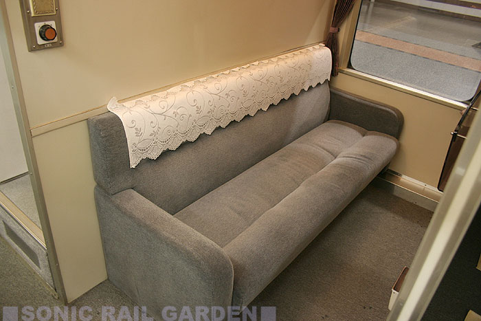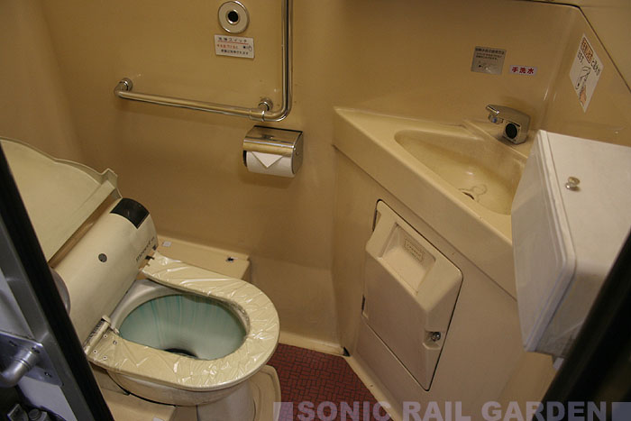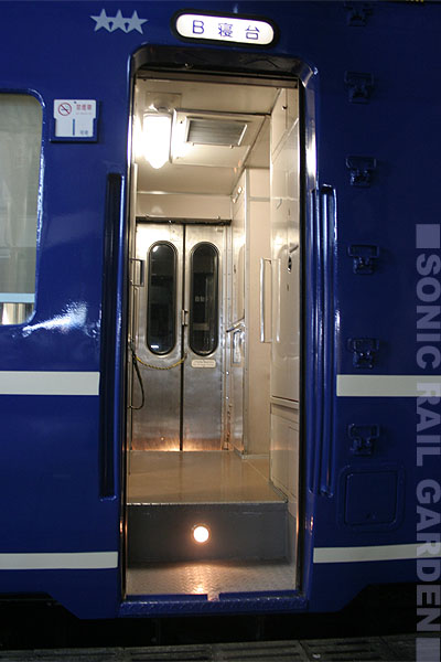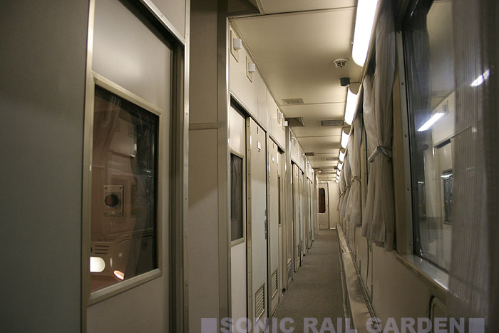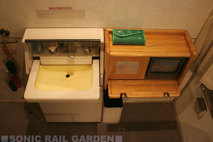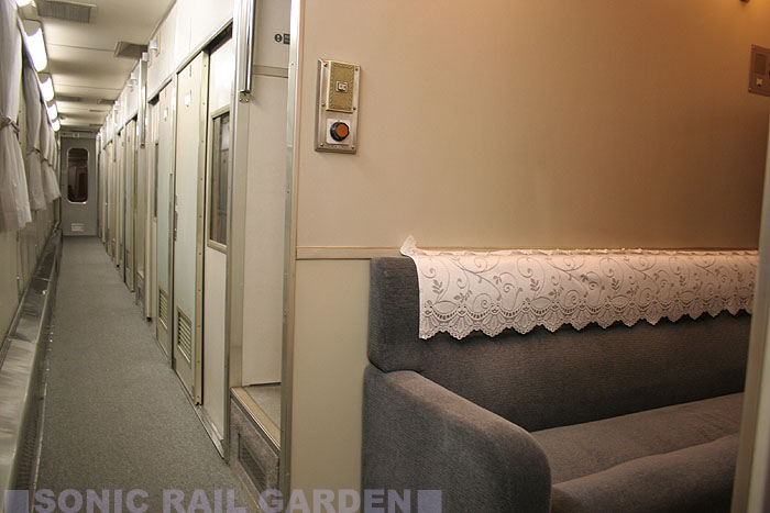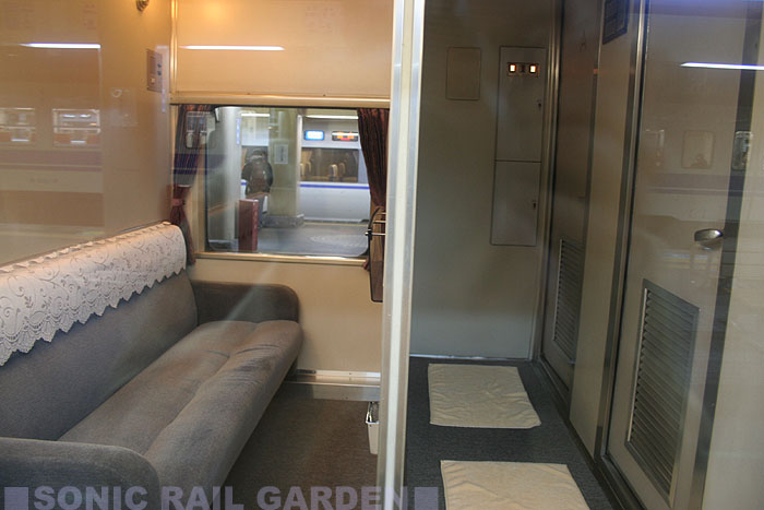サニタリースペースは、洗面台・トイレ個室ともに改造の手が入ってリファインされたスタイルがほとんどですが、 まだ旧式の古めかしいスタイルを残している車両もあり、編成内で新旧トリドリの“品揃え”となっています。 3号車A寝台個室車のデッキにはドリンクの自販機があります。7号車のデッキには更衣室が1室設置されています。 |