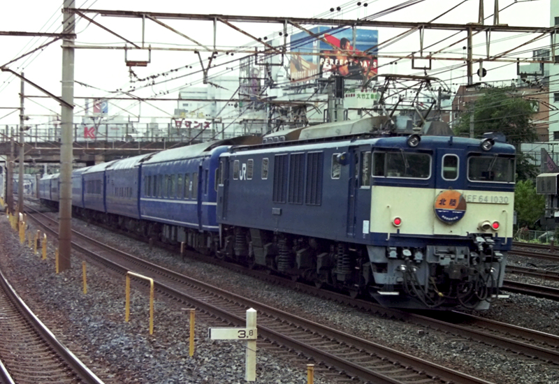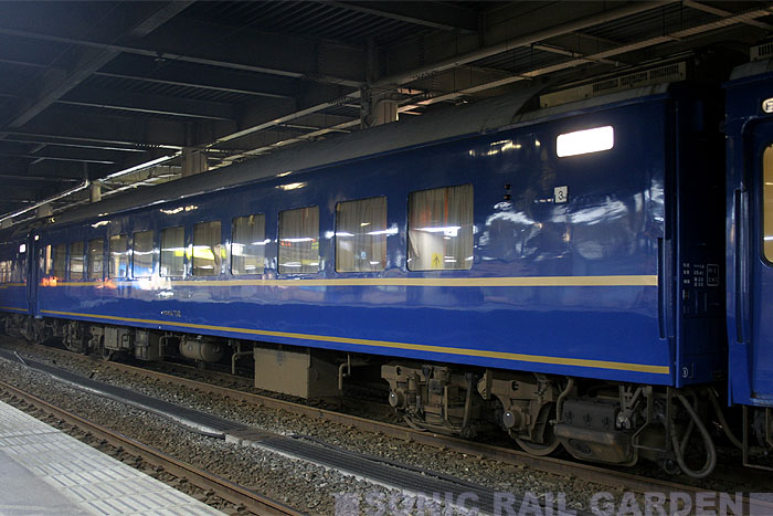1956年11月 「北陸」に寝台車を連結。運転区間を上野−福井間に変更 1959年 9月 運転区間を上野−金沢間に変更。 1975年 3月 「北陸」を寝台特急に格上げ。20系にて運行。 1978年 9月 「北陸」の使用列車を20系から14系客車に変更。 1989年 3月 A寝台個室「シングルDX」、B寝台個室「ソロ」の連結を開始。 下り終点金沢にてチェックアウトサービスを開始。 1990年 3月 B寝台個室「ソロ」を増車。編成の半分が個室車両となる。 1991年 3月 下り終点金沢でのチェックアウトサービスを終了。 1999年 3月 利用者の減少に伴い、12両編成から8両編成に減車。 2010年 3月 寝台特急「北陸」廃止。 (撮影時期:2006年) |