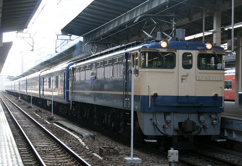 1961年10月 「銀河」は座席急行から寝台急行に変更。 1976年2月 使用車種が20系寝台客車に変更。 1984年2月 東京到着時刻が9時台から6時台に変更。 1985年3月 使用車種が20系から14系寝台客車に変更。 1986年11月 使用車種が14系から24系25型寝台客車に変更。 1991年3月 担当車掌区がJR東日本東京車掌区からJR西日本大阪車掌区に変更。 2008年3月 「銀河」廃止。愛称誕生から約60年で歴史に幕を閉じる。 (撮影時期:2006年) |