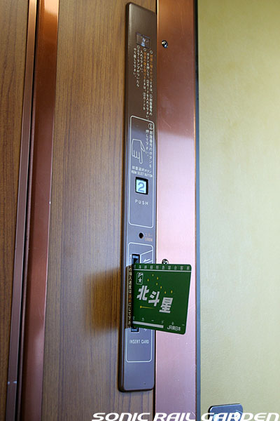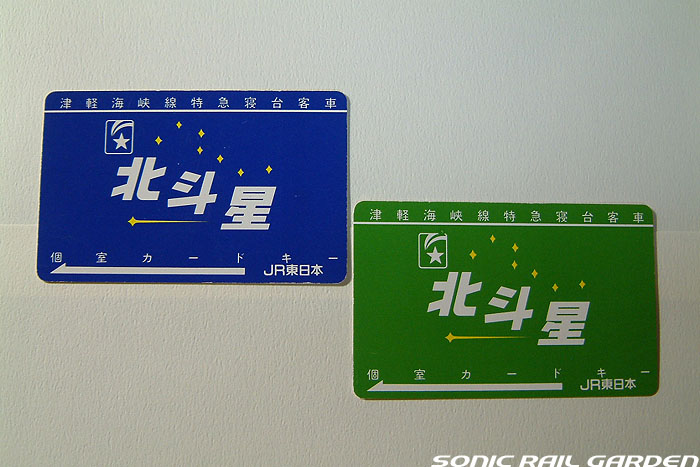 「寝台特急−ブルートレイン」に新しい潮流を生み出した「北斗星」。 その中でもA寝台個室「ロイヤル」は比類なき居住性と贅を尽くした設備で、これまでにない全く新しい試みとして注目を浴びました。 当時のJR関係者の間では、高額設定されたロイヤルの料金に「そうそうこの個室を選ぶ利用者もいまい」と考えられていたそうで、 「“走るショールーム”として機能してくれればそれで十分」と思われていたそうです。 ・・・・そしてその後、今日まで続くこの個室がプラチナチケット化している状況は、多くの方がご存知のことと思います。 室内の居住空間は、それまで最高位とされていた東海道ブルトレのA個室「シングルデラックス」の約2倍強。 シャワールームまで室内面積として換算すると、なんと2.5倍の広さを誇ります。 室内にはベッドにソファーチェア。それらがあってなお室内で歩き回れるという広さ。 上野〜北海道間の1晩がとても短いものに感じられるはず。 空間全体が重厚な木目調となっているのがJR東日本編成の特徴で、JR北海道編成のロイヤルとは雰囲気がかなり異なります。 ベッドは800mm幅。B寝台の700mm幅よりも大きめになっています。(長さは車両によって若干異なりますがおおよそ1,900mm長) このベッドの下には引き出し式のエキストラベッドが収納されており、これを引き出すとダブルベッドに。 このエキストラベッドをセットすると、さすがに室内全体がベッドになってしまうようですが、 ベッド幅は1,400mmにもなり、大人2人が並んで寝るには十分な大きさになります。 このエキストラベッド装備を考慮して、ロイヤルでは「2名利用料金」も設定されています。 「リビング」に相当する平面部には、前述のソファーチェアのほか、デスクやVTRモニター、 食堂車直通のインターフォン、据付型のドライヤー、そして各種AV装置と照明のコントロールパネルが機能的に設置されています。 VTRモニターでは2チャンネルが用意され、映画と旅番組などが繰り返し放映されています。 デスクはこじんまりとした大きさで、物書きしたり、ノートパソコンを使うにはちょっと厳しそう。 JR北海道編成の「ロイヤル」のデスクは机上照明が据え付けられていてちょっと邪魔ですが、こちらはすっきりとしています。 このデスクの窓側には、まるで空間の隙間を埋めるようにコートクロークスペースが設置されています。 通路側の上部にはかなり大きめの荷物収納スペースがあるので、クロークに入らないものはこちらへ置いてしまいましょう。 ロイヤルの乗客の特典として、食堂車がパブタイムの時間に限り、メニュー限定でルームサービスを頼むことができます。 また、乗車後には「ウェルカムドリンク」が、朝にはモーニングサービスとしてコーヒーか紅茶と朝刊がデリバリーされます。 個室のドアロックはカードキー式。カードキーは持ち帰りできるので、乗車記念として手元に残しておくことができます。 |