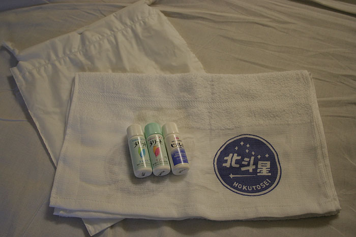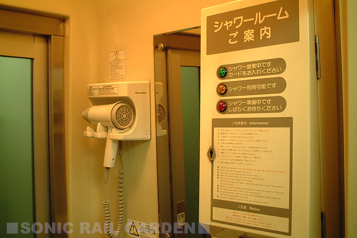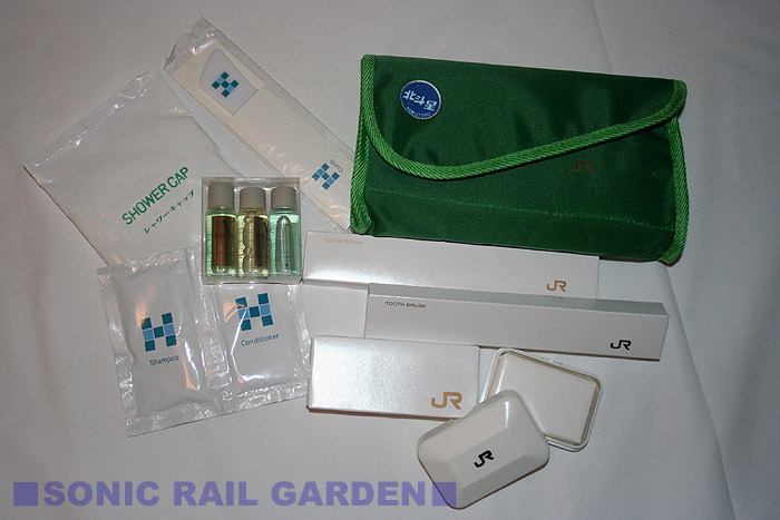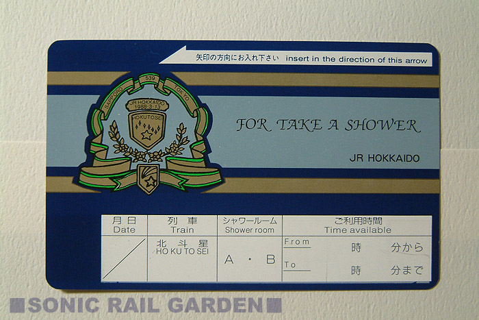 シャワーブースはA室とB室の2スペースがあり、利用するにはまず食堂車でシャワーカードを購入して予約が必要。 利用時間は上野(札幌)発車後から23:30までと、翌朝6:00から札幌(上野)到着の30分前までです。 シャワーカードは1枚310円で、1回の利用で30分の時間が確保できます。 シャワーは6分間の給湯で、途中「一時停止」を使えば、身体と頭を洗って泡を流し、体を暖めるには充分な利用時間です。 (洗髪に時間を掛ける女性には6分は短いかもしれません) 残り時間が1分を切ると、室内に「緊急事態発生!」の如くブザー音が鳴り響き、ちょっとビックリします。 残り時間に余裕があっても、うっかりドアを開けるとそこで残り時間がゼロになり、利用終了になるのでご注意を! 更衣スペースには、脱いだ服を入れる簡単なカゴとカガミ、ドライヤーがあります。 ドライヤーは風量が大変弱いので、なかなか髪の毛が乾きません。女性は間違いなくドライヤーを持参したほうがよいです。 このシャワー室にはタオルや石鹸などは一切設置されていないので、利用者が自分で用意する必要があります。 もし洗面用具を忘れてしまっても、食堂車でシャワーセットが売られているので大丈夫。 このシャワーセットは1セット420円。タオルには「北斗星」のロゴ入りで、持ち帰れば旅の記念になりますね。 |