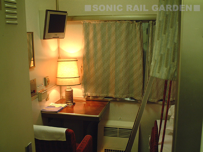 「ロイヤル」とならんで「豪華寝台特急・北斗星」を演出してきたのが、この「ツインデラックス」。 真紅の格子柄モケットを纏ったソファーにベッドは華やかで、当時の“新生JR”を印象つけるものでしたが、 実はこの「ツインデラックス」、国鉄時代末期に改造されて登場した個室だったりします。 「盛アオ」表記を身に纏って寝台特急「ゆうづる」でデビューを飾ったエピソードを持っている、 「ロイヤル」よりも「北斗星」自体よりも“先輩”なわけです。 さて、室内には前述のようにソファーと2段式のベッド(下段はソファーにもなります)にライティングデスク。 ベッドは上段が70センチ幅、下段は75センチ幅。 下段はベッドを起こすと、センターセーブル付きのソファーが現れます。 上段には読書灯のほかに小窓があり、寝ながら車窓越しに外の風景を見ることができます。 個室入口脇にはロッカーがあり、ちょっとした荷物と上段ベッド用のハシゴが収納できます。 (このロッカーがいかにも“業務用”って感じのもので、すんごい場違いなのが笑えます) 照明と空調の調整ボタンとツマミは個室入口のベッド側壁面にあります。 「カシオペア」が登場した今や、料金的に「カシオペアツイン」と同等になってしまった「ツインデラックス」。 前者が個室内にトイレと洗面台を完備、ナビゲーションシステム付きのAVサービスに衛星放送放映と、 「ツインデラックス」のはるか先を行ってしまっているのですが、 「カシオペア」が2階建て車両の空間制約が大きい中で、この「ツインデラックス」の広々とした空間占有は、 乗車時間の長い分、かなり大きな選択要素になるものではないでしょうか? |