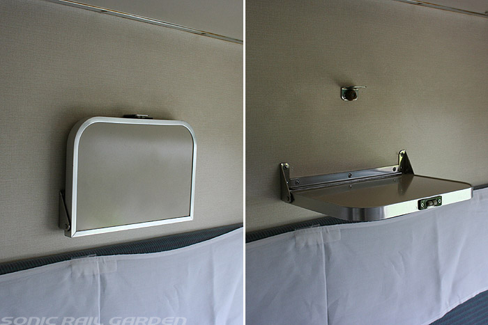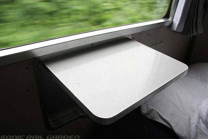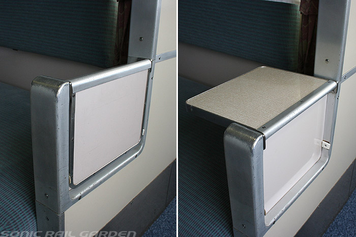 下段寝台のみにあるテーブル。 | 本来は下段寝台をボックス席にした際の昼行仕様で使うものだが、 寝台展開時にも引き出して使うことができる。 ![]()