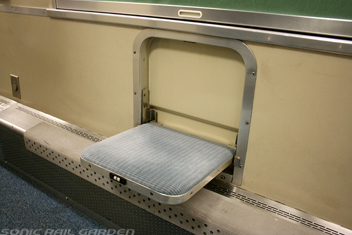B寝台お馴染みの通路の収納座席。 | 「日本海」号では下りは夕刻〜夜、上りでは早朝から大阪到着までの 乗車時間が長いのでかなり活用されている。 ![]()