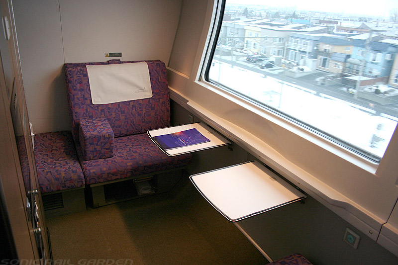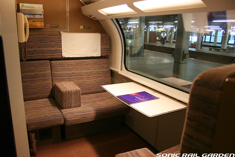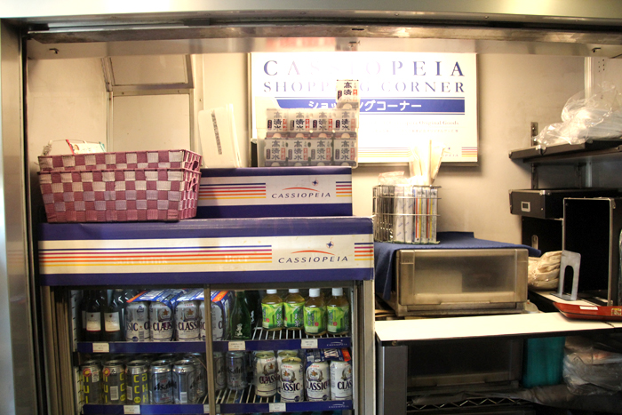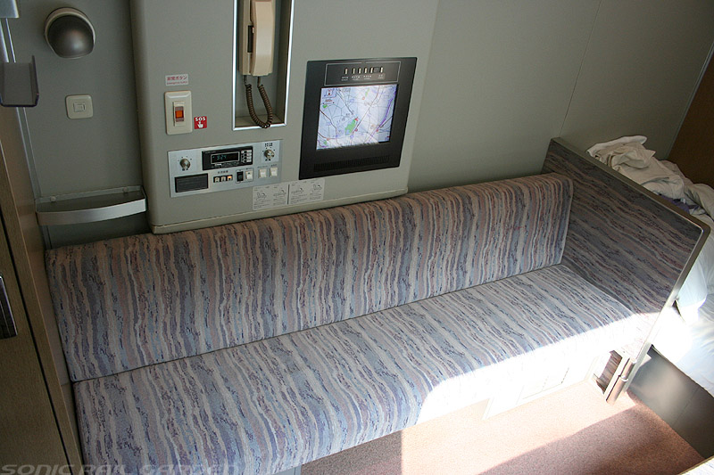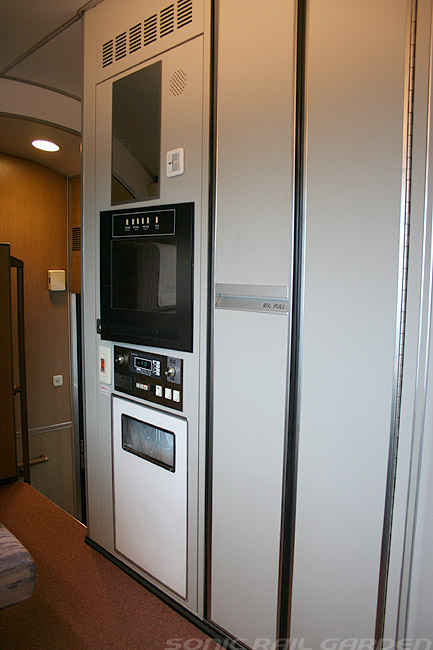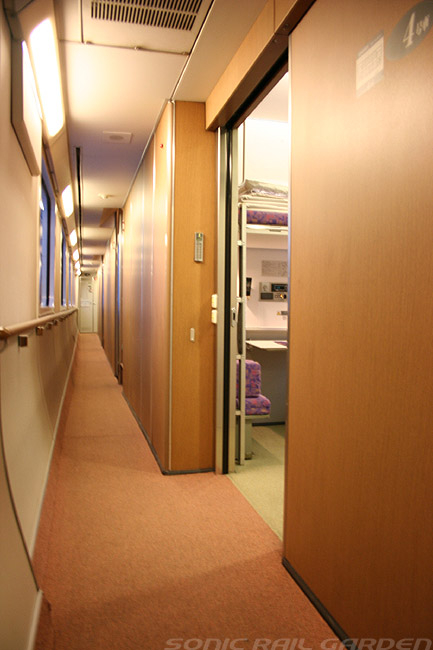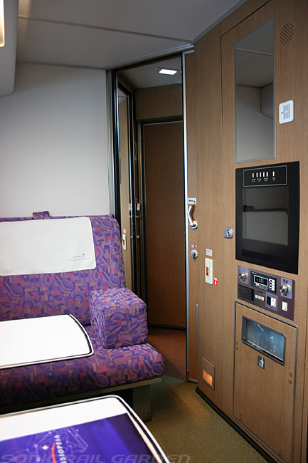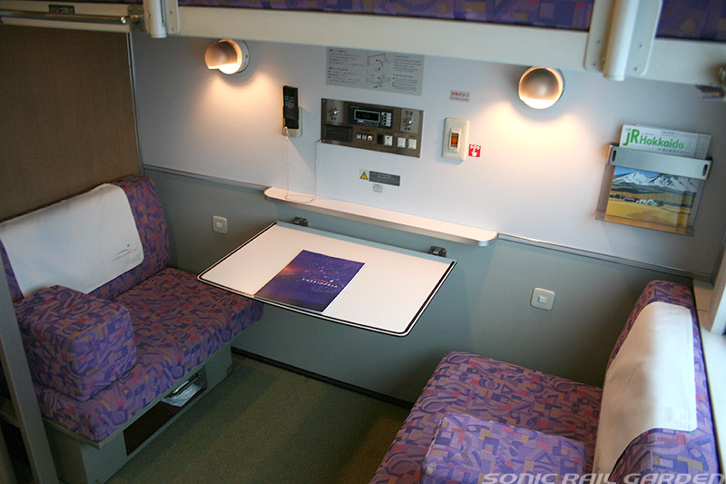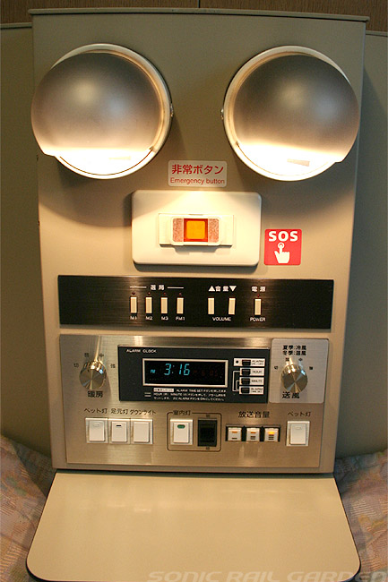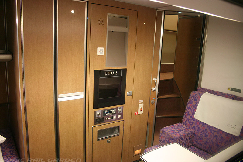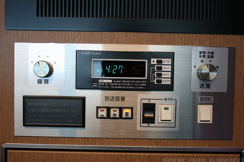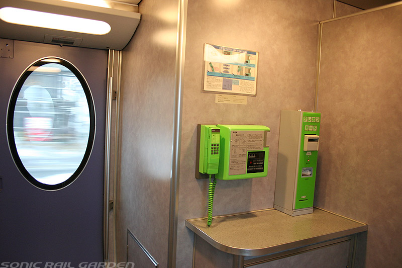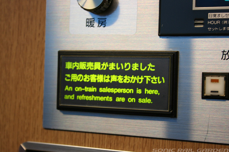 車内販売が全区間で乗務しているが、 | 全室個室のため室内にいると車内販売が来たことが分からない。 そのため、コントロールパネルには車内販売が 自室の車両に来ていることを知らせるメッセージパネルがある。