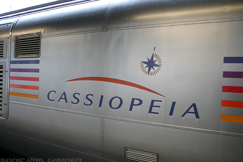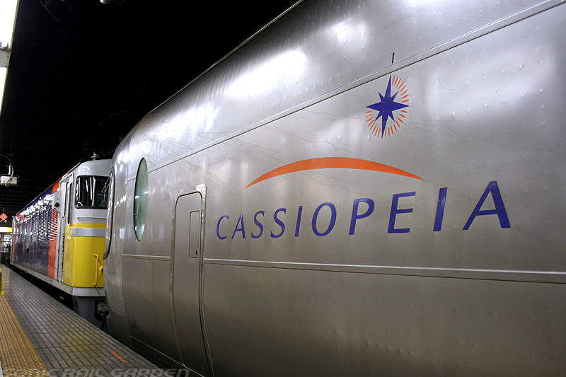 1995年頃 新造車両による全く新しい寝台客車「ニュー北斗星」構想が持ち上がる。 1999年 7月 E26系寝台特急「カシオペア」運行開始。 1編成のみの新造で、隔日運転の臨時列車として運行。 2000年 2月 電源車兼ラウンジカーの予備用としてカヤE27形が登場。 2010年 6月 EF510形500番台機関車が「カシオペア」の牽引を開始。 2012年 3月 食堂車「ダイニングカー」が終日全面禁煙化。 2014年10月 以降、北海道新幹線開業工事に伴い、散発的に運休や時間変更が発生。 この運休期間中に団体専用列車「カシオペアクルーズ」を度々運行。 2015年 8月 寝台特急「北斗星」が臨時運行を終了し完全廃止。 これにより「カシオペア」は上野発着の最後の寝台特急となる。 2016年 3月19日 下り札幌行き「カシオペア」最終運転。 2016年 3月20日 上り上野行き「カシオペア」最終運転。21日〜25日は新幹線開業準備に伴い全列車運休。 2016年 3月26日 北海道新幹線開業に伴い、「カシオペア」完全廃止。 2016年 4月 JR東日本がE26系を引き続きクルーズ列車として運行することを発表。 2016年 6月 定期運行終了後初の「カシオペアクルーズ」で、E26系の運行を再開。 クルーズ列車化に際して、客室の液晶テレビ撤去とコンセント増設工事を実施。 牽引機はEF510形の売却に伴い、EF81型機関車が牽引機として復活。 2017年 2月 E26系客車の北海道内での運行を終了。 2017年 5月 クルーズトレイン「TRAIN SUITE 四季島」が運行を開始。 これにより「カシオペアクルーズ」の運行を終了。以降「カシオペア紀行」のみ販売・運行。 2025年 5・6月 「カシオペア25周年YEAR」の記念ツアーを催行。これが実質的な引退記念ツアーとなる。 2025年 6月 E26系の老朽化、および牽引機関車の引退・廃車促進のため「カシオペア」は完全引退。 1号車のスイート客車以外の車両は全て廃車。 2000年 鉄道友の会ブルーリボン賞受賞 エクステリア・インテリアデザイン:TDO(Transportation Design Organization)+剣持デザイン研究所 (撮影時期:2010年・2016年) |