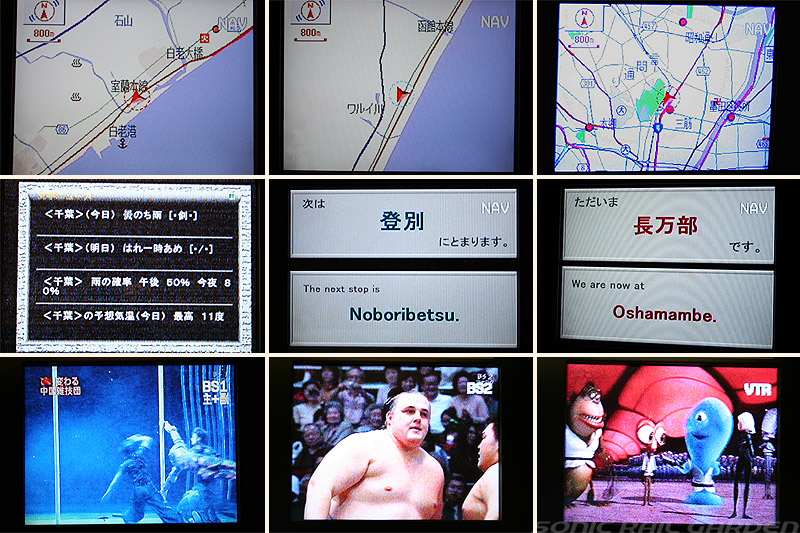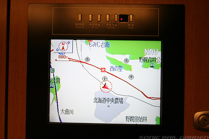 そのほかにナビシステムによる列車位置情報も放映され、 列車が今どこを走っているのかが分かるようになっている。 |