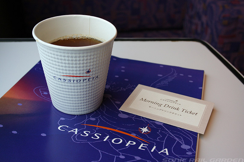 A個室ということで全室にウェルカムドリンクサービスがある。 | 右のチケットはモーニングコーヒーチケット。 個室数の多さからウェルカムドリンクサービスはかなり時間がかかり、 全室回るのに1時間以上かかることも。