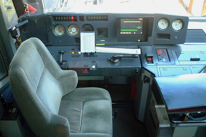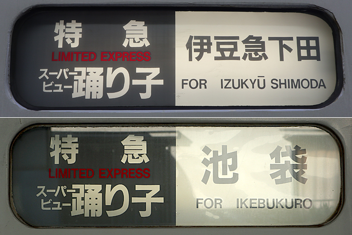 今回のリニューアルで最も大きく姿を変えたのが、普通車に相当する「カスタムユニット」です。 座席そのものが全て交換され、その座席モケットも奇数号車はオーシャンブルー、偶数号車はハイビスカスピンクに。 251系のデザインコンセプト「乗った時からそこは伊豆」を大きく超え、「乗った時からそこはハワイ」ぐらいの勢いがあります。 座席は全席が回転式のリクライニングシート。 以前の包みこむようなシートのもつ独特な雰囲気はありませんが、一般利用者からすればこちらのほうが印象はいいようです。 リクライニングのほかに、JR東日本の特急車座席の標準機構「座面スライド」ももちろん装備しています。 その「座面スライド」機構ですが、E653系「フレッシュひたち」やE257系「あずさ」などのものに改良が加えられています。 今までは座面が前方にスライドするだけでしたが、251系装備品ではスライドと同時に腰にあたる部分が沈むようになります。 なかなかの座りゴコチなので、今度の「スーパービュー踊り子」は普通車でも充分満足できます。 荷物棚は登場当時から変わらず、旅客機のような「オーバーヘッド・ストウェッジ」スタイル。 開くまでえらく時間がかかるものから、ガツン!と勢いよく開くものまであり、相変わらず油圧の利きがまちまちです。 各車デッキ仕切りドアの上にあった、投影式のビジュアルスクリーンは全て撤去されました。 |