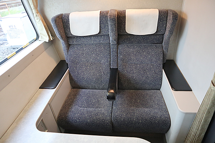 9号車・10号車にはかつて「グループユニット」と呼ばれたセミコンパート席がありました。 今回のリニューアルではセミコンパート席は全て撤去されて、「カスタムユニット」化。普通の座席車になってしまいました。 混雑時には相席も常態化していたようですし、やはりコンパート単位でのマルス管理が難しかったのでしょうね。 この9号車と10号車は、窓割りがセミコンパート席時代のままで、改造の手を付けられていません。 普通車ピッチ1,000mmで座席を展開したために、窓の柱が目の前に来る「外の見えない窓側席」が出来てしまいました。 指定券購入時に、空席に余裕があるようなら9号車と10号車は避けたほうがいいでしょう。 乗車当日にハズレ席を引いてしまってガッカリ・・というリスクは少なくて済みます。 |
