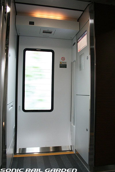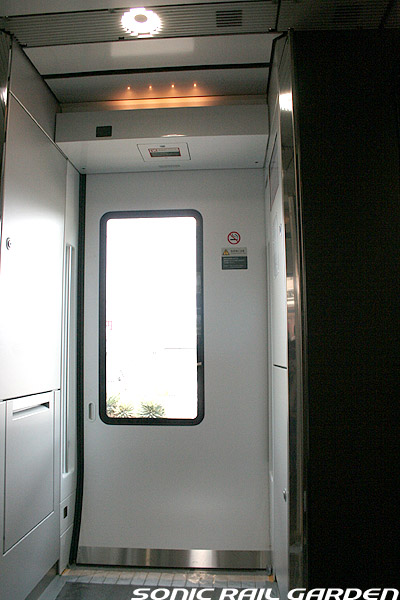 グリーン車は、6両編成の成田空港方先頭車:6号車(12両編成の場合は6号車と12号車)に設定されています。 初代「成田エクスプレス」の253系では、オープンキャビンに加えて4人用個室がありましたが、E259系ではグリーン個室はありません。 グリーン席は2+2の4アブレストとなりました。 先代253系デビュー当時の1+1や2+1のランダム配置など、自由奔放なキャビンアレンジメントはいまや「伝説」となりつつありますが、 E259系ではおそらく、需要面から見た現実的な座席数確保という点で2+2配置に設定したのではないかと思われます。 (事実、車端部に大型のユニバーサルサニタリーを設置したことにより、グリーン車キャビンはさほど大きくありません。 この大型トイレを普通車に持っていくと、普通車の定員が大幅に減ってしまうので、その点ではグリーン車が割を食った感じでもあります) 2+2配置になったことで、1+1や2+1時代を知っている世代にはどうしてもグレードの低いグリーン車というイメージになってしまいますが、 座席そのものは上品・上質な出来栄えとなっています。 座席は総革張りで、座ってみるとすぐ分かりますが、リクライニングしない状態では革張りソファーに腰掛けたような感覚になります。 革張り座席というと、表面が滑る感じや、革の張りが強すぎると椅子に体を乗せているだけという感じがしますが、 この座席は、座面に下ろした腰が柔らかく沈む感覚があって、これまで鉄道車両で出てきた革張り座席とは一味違う座り心地です。 この座席の絶妙な点が、フルリクライニング時の角度と前席の下部に取り付けられたフットレスト・バーの関係。 軽く腰掛けた状態でバーに足をかけると、バーが異様に高い位置でストッパーが掛かる(バーがあまり下まで降りない)のに気がつきます。 これ、実はフルリクライニング(もしくはそれに近い角度)で背をもたれた姿勢でバーに足を掛けると、足がかなり楽な状態でホールドされます。 ヘタなレッグレストよりかは、こちらのほうがはるかにリラックスした姿勢を保持できるように感じられました。 さて、実際に乗車してみて、やはり割高な「A特急料金」の設定であることがどうにも引っ掛かってきます。 座席そのものの、革の素材感とか腰掛けた時のゆったり感はなかなかのものですが、4列設定ゆえの「ゆとり」の無さが気になります。 通路を隔てた隣同士(B席とC席)でも、その隣に座っている乗客の存在が気になるほどに近さを感じさせてしまっています。 通路を隔てても「隣客」を感じるのですから、他人がすぐ隣り(A/B席同士やC/D席同士)に来た場合には、全く落ち着きなど感じられません。 付帯サービスである「無線LAN」「コンセント」も普通席と共通であり、さらに普通席ではシートピッチが広がってグレードが高くなったので、 「グリーン席だからこそ、このサービス」「グリーン席でしか受けられないサービス」という、プラスアルファが正直見出せません。 客室中心部の天井に設置されたLCD情報装置も、リクライニングした姿勢で目線に煩わしく、グリーン席でこのノイジーな空間作りはガッカリ。 「乗車中に、リアルタイムでたくさんの情報を提供」をウリにするなら、A特急料金のグリーン車ならE655系「なごみ」並みの個別液晶モニターを 全席に個別に設置して、「見たい人は見る」「静かに過ごしたい人はモニター電源を切る」くらいのパーソナルな設備として欲しいものです。 海外からの利用者からすると「成田エクスプレス」の料金設定はかなり割高に感じるそうで、その高級列車の「ファーストクラス」である グリーン席がこの程度のものだとは、JR東日本ほどの大会社が持つ「国際感覚」の程度を疑ってしまいます。 次項で紹介する「普通車」のグレードがかなり良くなっているので、「成田エクスプレス」の利用は普通車で充分満足を得られるものと感じました。 シートピッチは1,160mm。さらに、雑誌などによれば座席下は250mm高を確保して荷物が置けるようにと想定しているそうです。 (そのためか座席の回転がアームレスト後方のレバー式に。このレバー式回転が使いにくい。座席が重いので実に回し難く感じる。) 床面は全面が市松模様の絨毯張り。革張りシートが並ぶ「重々しい雰囲気」をカジュアルながらも上品な雰囲気に変えることに成功しています。 |