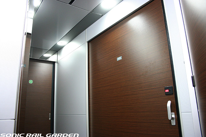 サニタリースペースは、編成中2ヶ所と少なめの設定。1号車と6号車(12両編成の場合はさらに7号車と12号車)の編成端部に設置されています。 そのため、編成の真ん中に近いところに座っている人ほどトイレがとても遠く感じられるはず。 1号車(7号車)は、洗面台・洋式個室・男性用個室。洋式個室には収納式のベビーキープとベビーベッドが設置されています。 グリーン車の6号車(12号車)は、電動車椅子でも入れる大型の洋式個室となっていて、内部はE655系「なごみ」のそれとほぼ同じになっています。 残念ながら、「成田エクスプレス」ではウォシュレット設備は設置されていません。 |